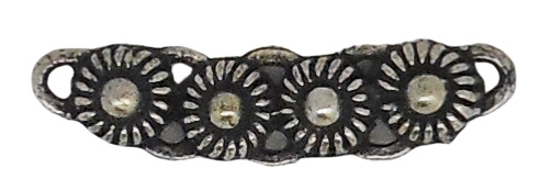 Dit compacte strookje met vier kleine Zeeuwse knopjes en twee oogjes is perfect als tussenstuk in kettingen, armbanden of andere sieraden. Het ontwerp combineert traditioneel Zeeuws vakmanschap met functionaliteit, waardoor het een subtiel maar karaktervol element toevoegt aan je creaties.