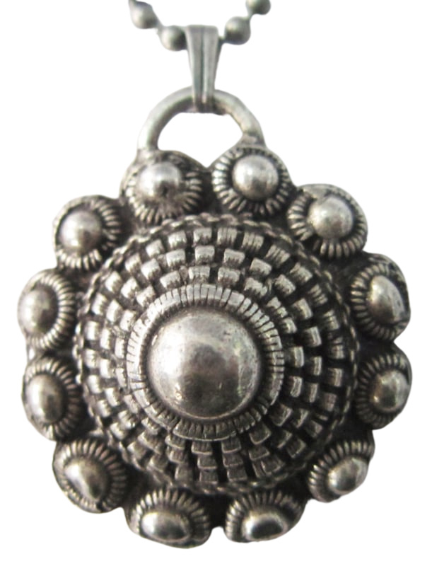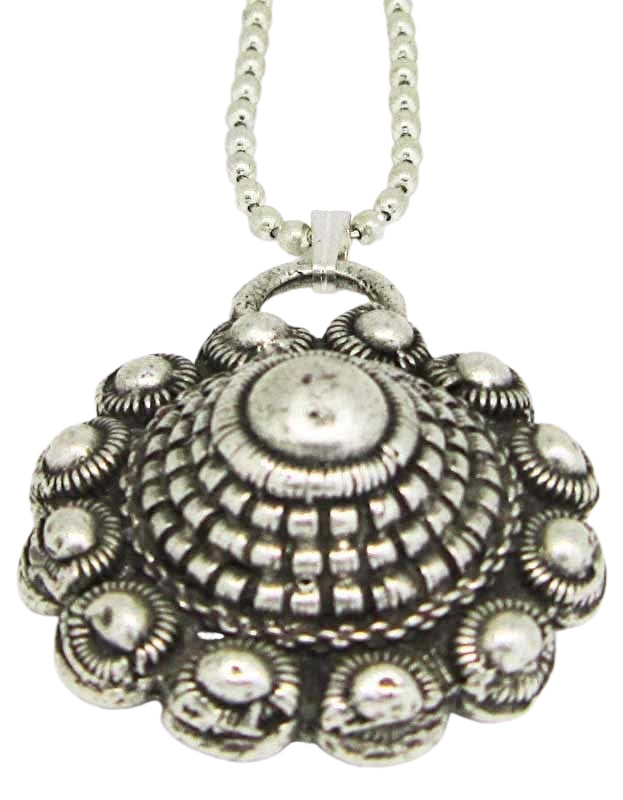 Zeeuwse bolle knoop met veel randen verzilverd, aan ketting