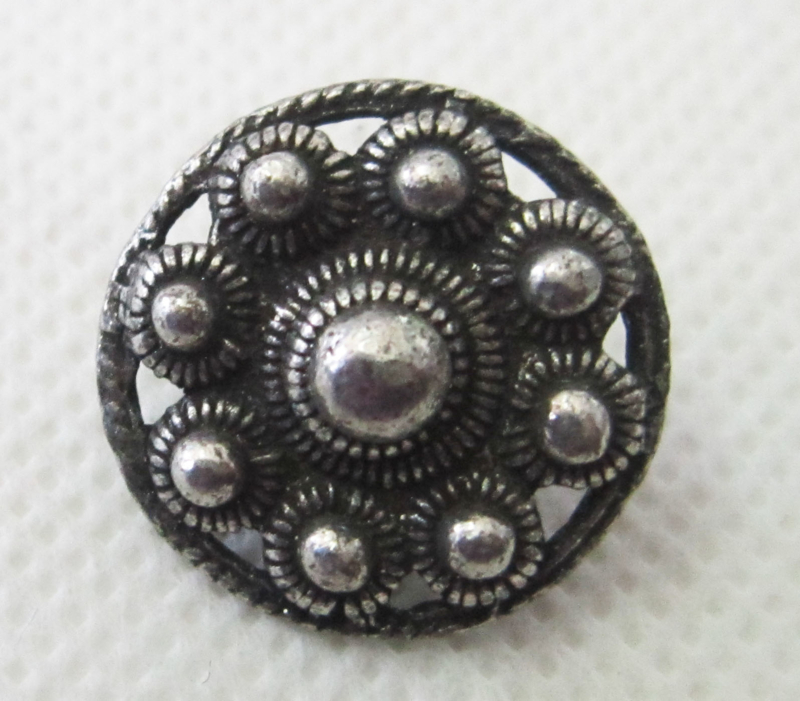 Zeeuws kledingknoopje zwaar verzilverd, 1 cm doorsnede ZKK 805Zeeuws Kledingknoopje – Zwaar Verzilverd, 1 cm Doorsnede